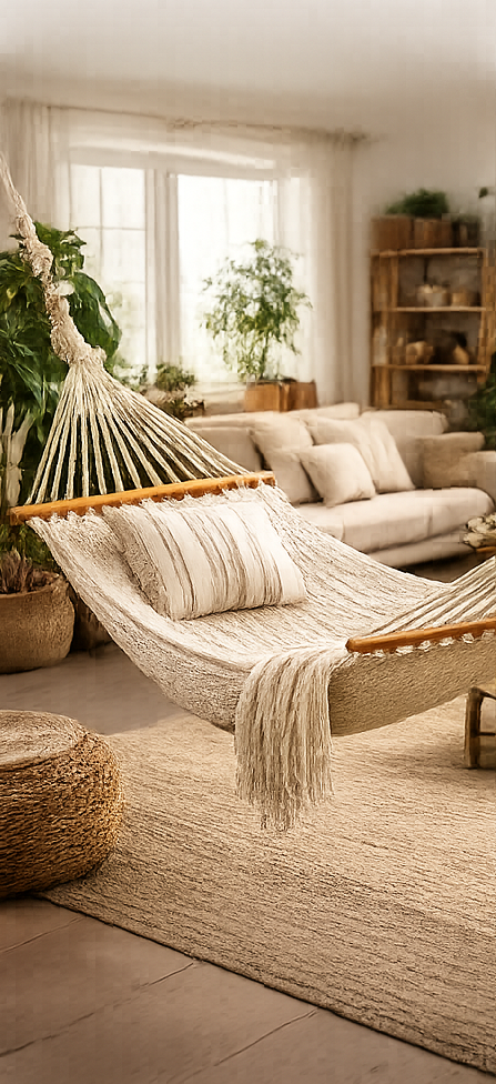 L’un des grands avantages du hamac est sa grande polyvalence. Il peut être installé presque partout : dans un jardin entre deux arbres, sur une terrasse, sur un balcon ou même à l’intérieur.