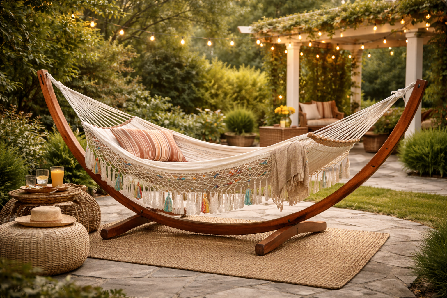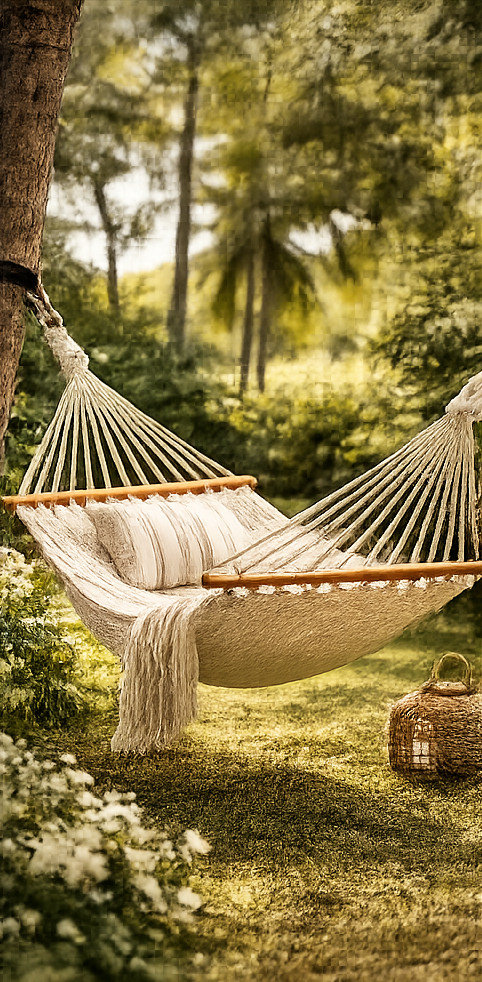 Que ce soit pour lire, faire une sieste ou simplement se relaxer, le hamac procure une sensation de confort et de légèreté unique grâce à son mouvement naturel.